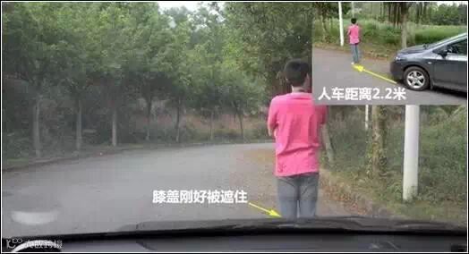 2、当你看到车前端升高到行人膝盖高度处时,车前端与人体距离为2.2米。