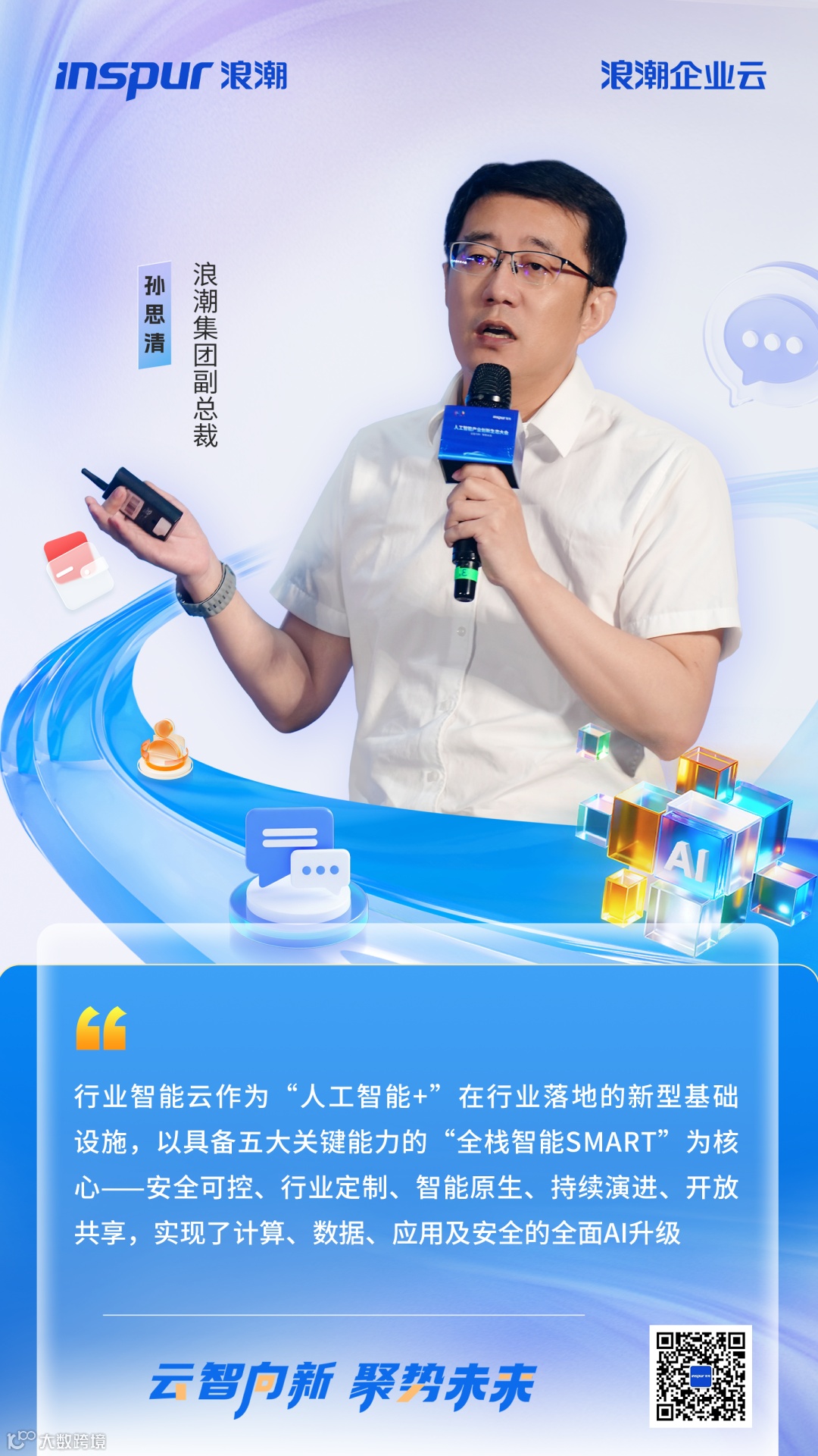 9月6日,在2025世界智能产业博览会召开之际,由浪潮集团承办的人工智能产业创新生态大会在重庆成功召开,现场重磅发布浪潮云帆行业智能云,并成立云帆联盟。会上,浪潮企业云总经理孙思清作行业智能云主旨报告,与参会嘉宾共同探讨“人工智能+”赋能产业发展的新思路、新方向。