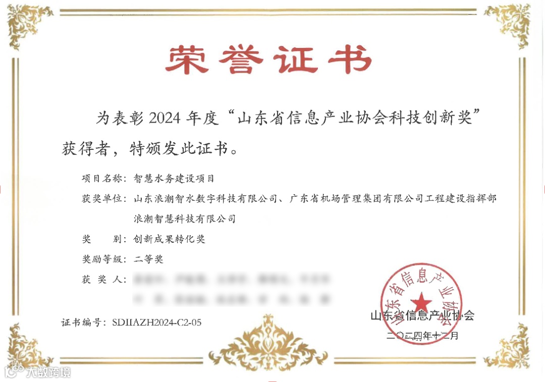 近日,山东省信息产业协会公布了“山东省信息产业协会科技创新奖”获奖名单,浪潮智慧科技智慧水务建设项目获得创新成果转化二等奖。