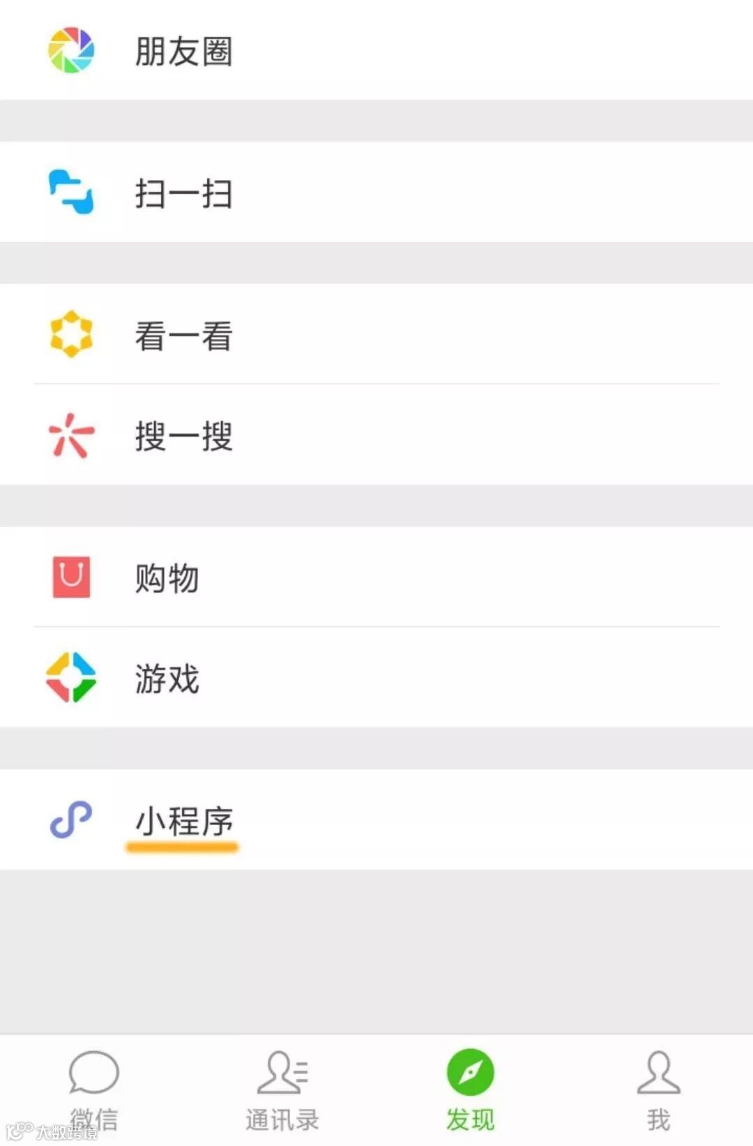 在微信【发现】里面找到【小程序】,点击右上角的搜索。