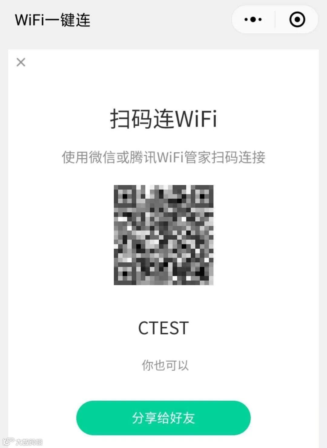 简单几步就连上了WiFi。可以看到,这个小程序还有分享WiFi功能。平时去别人家,第一件事就是问WiFi密码。用这个小程序能直接把WiFi分享给好友,是不是很方便。