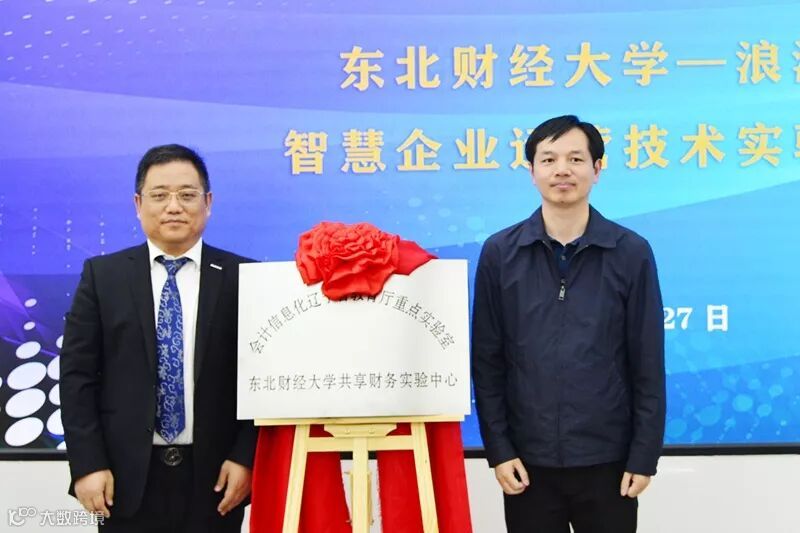 创新创业与实验教学中心主任娄道凯和浪潮铸远教育科技有限公司总经理马建军共同为“东北财经大学—浪潮智慧企业运营技术实验室”揭牌。