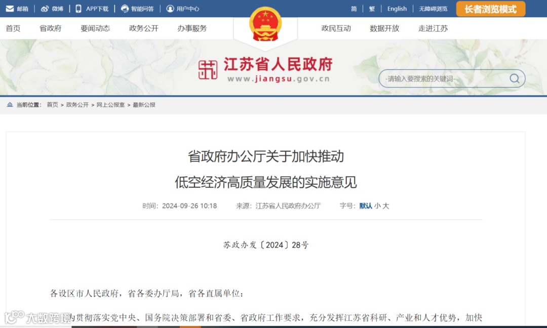 2024年,低空经济作为代表新质生产力的产业“新引擎”,是充满了机遇与挑战的新蓝海。从顶层设计的科学布局到政策红利的持续释放,从空域管理的积极探索到技术创新的不断兴起,低空经济蓬勃发展并展现广阔前景。2024年8月,江苏省政府办公厅印发《关于加快推动低空经济高质量发展的实施意见》,明确了加快低空基础设施建设、增强低空产业创新能力等重点任务。