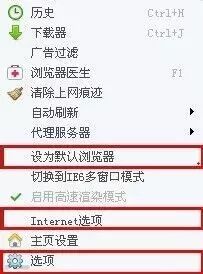 其它浏览器的设置几乎都差不多,雷同第二种方法,不过一般每一种浏览器都有自己特定的设置选项。比如说有一个Internet选项(针对IE的),还有另一个“选项”,通常这种情况下,选择本浏览器自己的选项即可,进行设置。