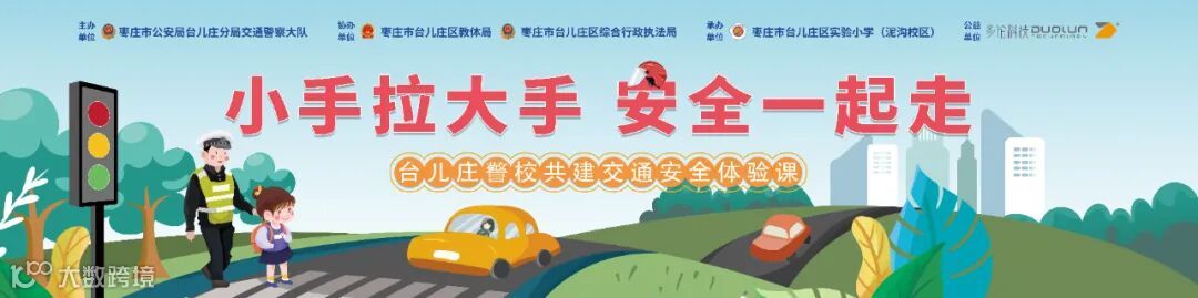 为倡导有序安全的出行行为,打造和谐文明的交通环境,2021年12月22日,由枣庄市公安局台儿庄分局交通警察大队、枣庄市台儿庄区教体局、枣庄市台儿庄区综合行政执法局和多伦科技股份有限公司共同举办的“小手拉大手 安全一起走 ”——台儿庄警校共建交通安全体验课,走进枣庄市台儿庄区实验小学(泥沟校区),近千名小学生在生动有趣的互动体验中轻松学习交通安全知识和安全技能,提升自我保护能力,增强交通安全意识。