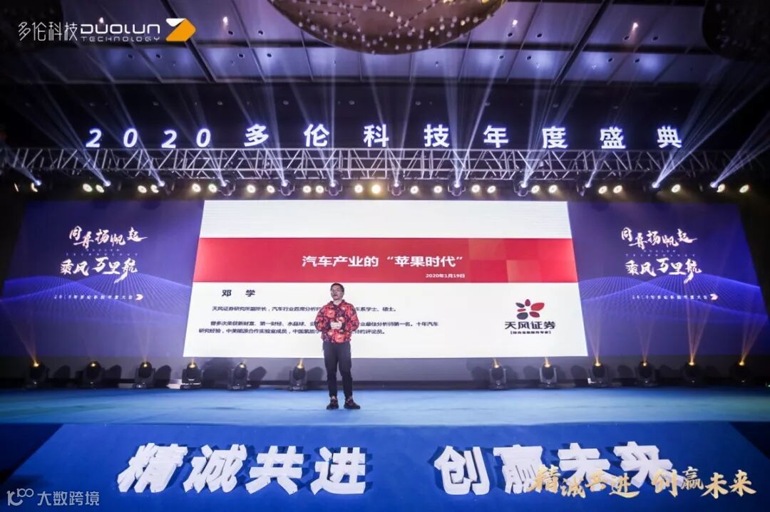 总结大会首先由天风证券研究所副所长、汽车行业首席分析师邓学的精彩演讲开启。用详尽的行业数据、深入的市场分析、前沿的趋势研判和引人入胜的案例分享,深入浅出地剖析了“行业领军者用创新引领时代”在汽车行业的变革,立刻吸引了在场观众的注意力。