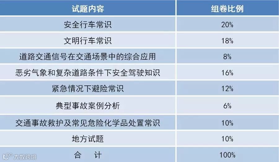 科目三安全文明驾驶常识考试试题内容比例