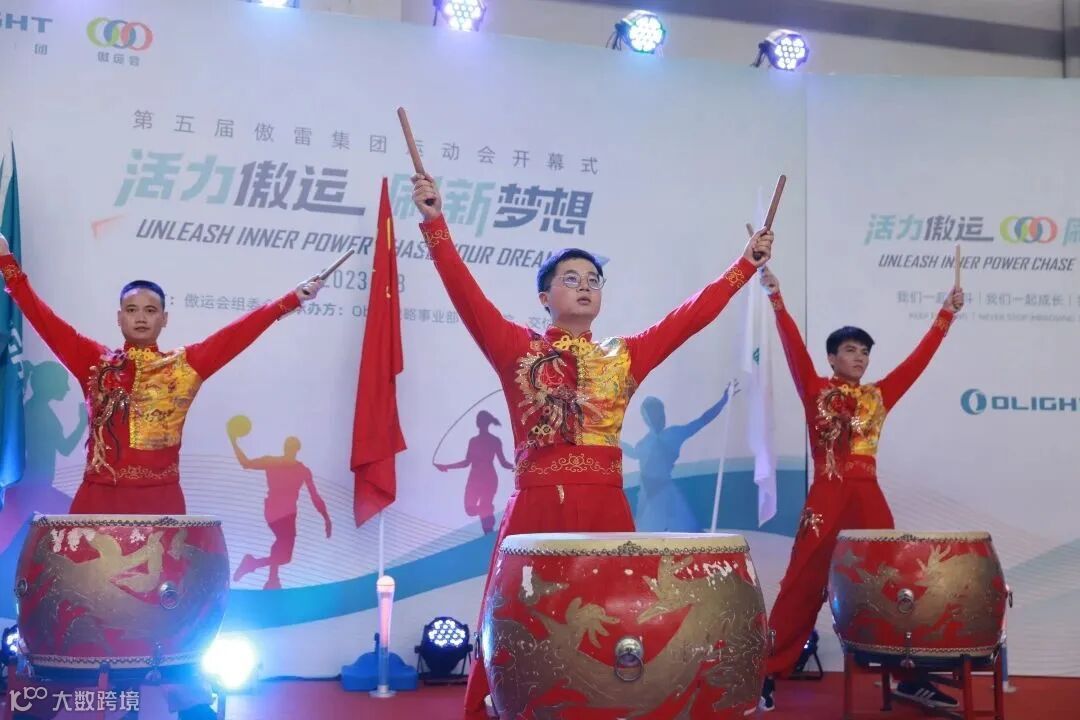 鼓声乍起,呐喊阵阵,一声声雄浑的鼓点,如湖面击起的水花,一场名为《傲雷健儿,鸣战鼓》鼓舞,击中了现场每位傲雷人热烈的心。