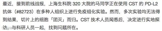 导读:最近,接到前线战报,上海生科院 320 大院的马同学正在使用 CST 的 PD-L2 抗体(#82723)在