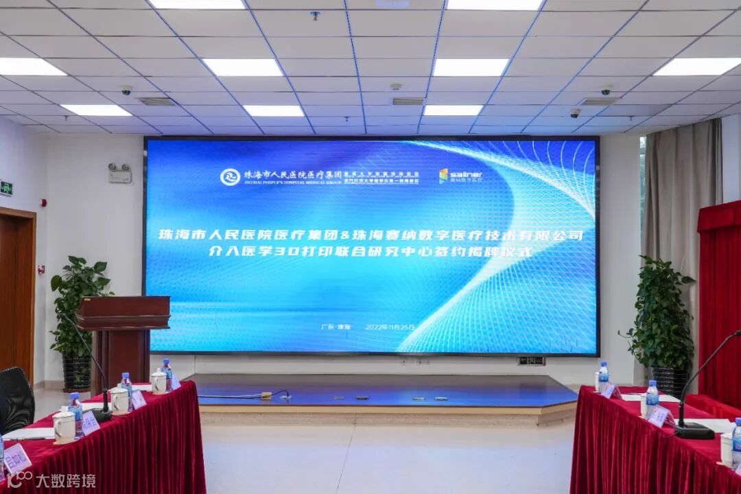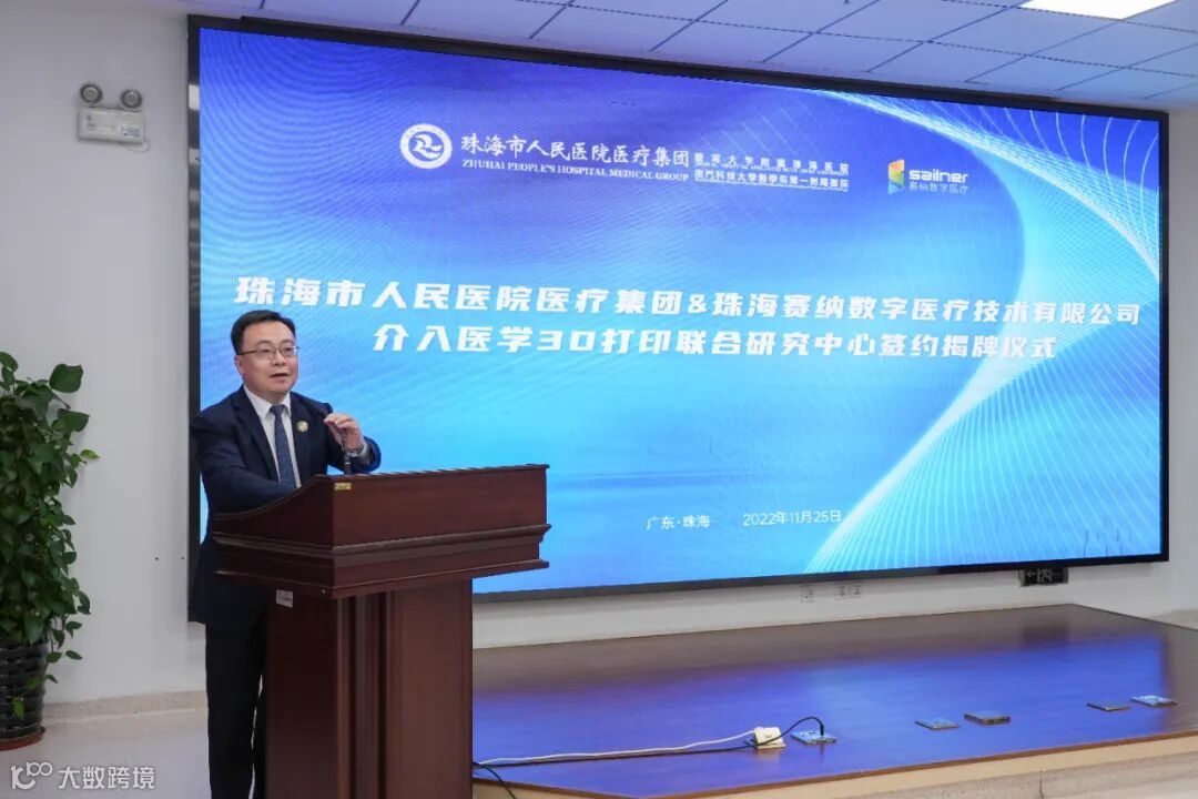 2022年11月25日上午,粤港澳大湾区首家“介入医学3D打印联合研究中心”在珠海成立,珠海市人民医院医疗集团携手珠海赛纳数字医疗技术有限公司就合作共建“介入医学3D打印联合研究中心”举行了合作签约暨揭牌仪式。