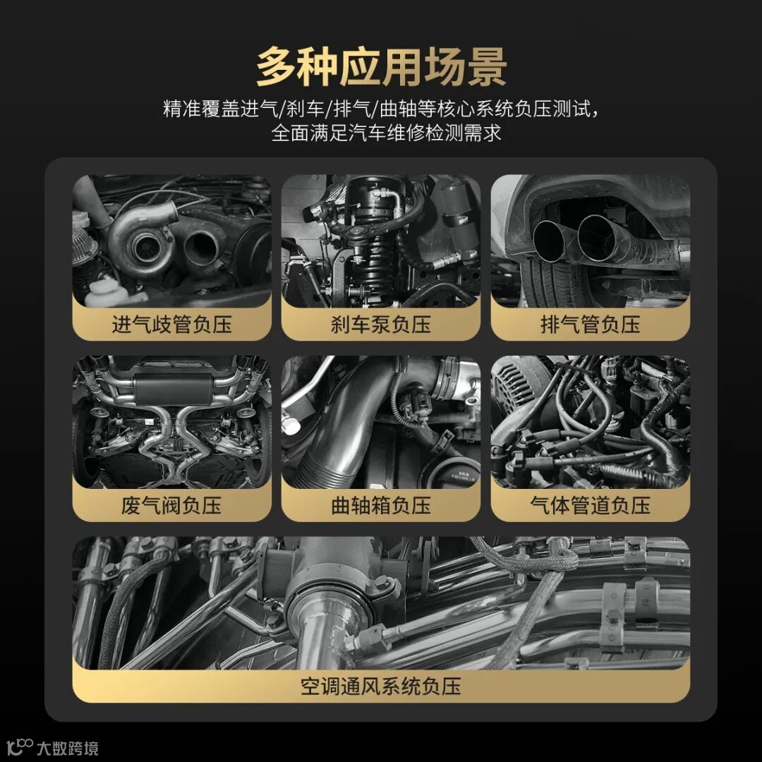 专业应用于汽车维修领域,适用于进气岐管、排气系统、曲轴箱通风系统、废气阀等关键系统的真空压力检测。