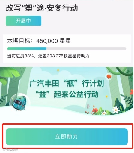 ⑤ 最后选择“改写‘塑’途·安冬行动”项目,点击下方“立即助力”即可