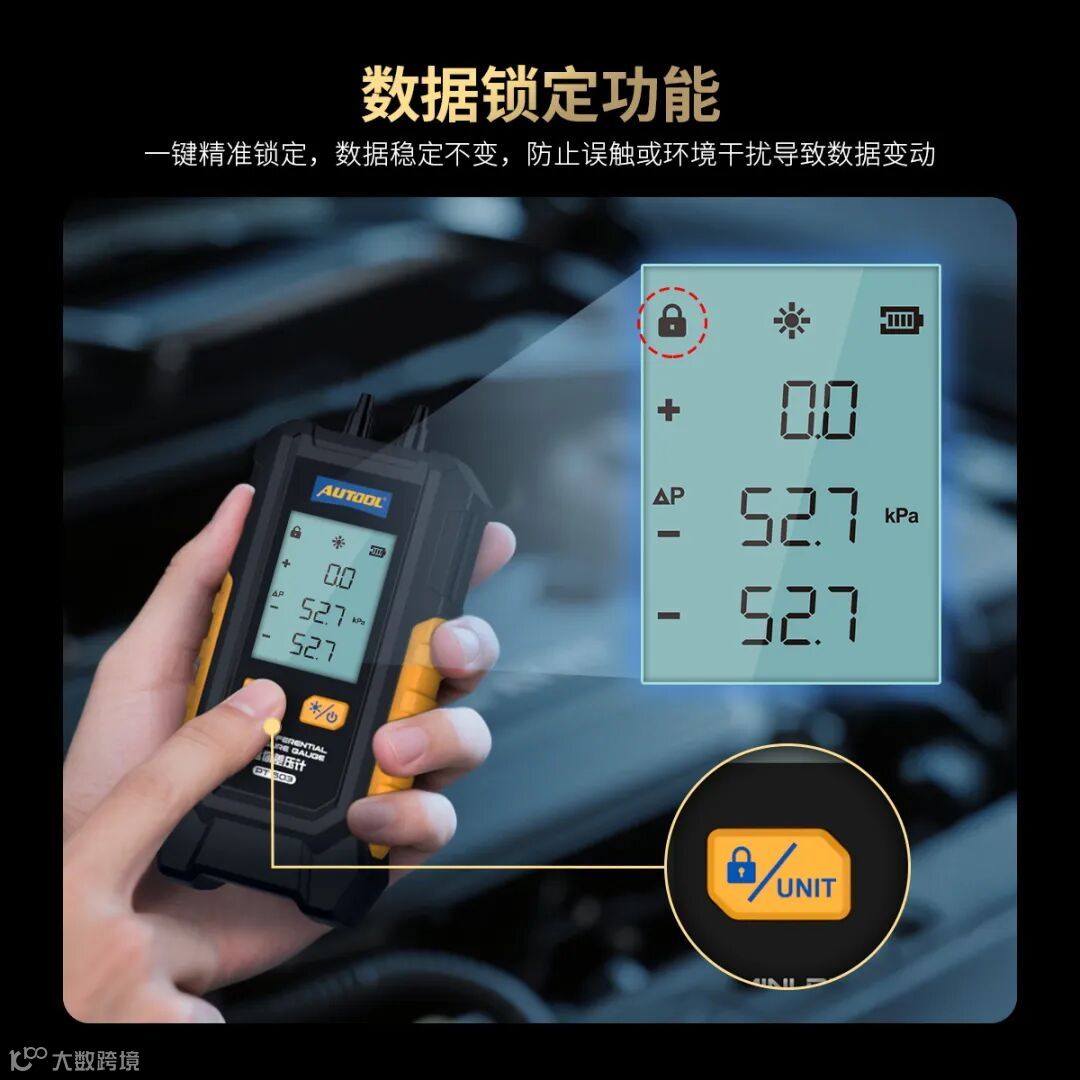 AUTOOL PT503具备多种功能,支持一键锁定,可避免因手持晃动、环境振动等外部因素导致读数漂移,为维修中的压差诊断提供稳定可靠的数据支撑。