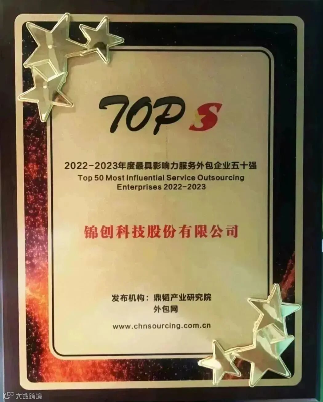 锦创科技荣获“2022-2023年度最具影响力服务外包企业五十强”