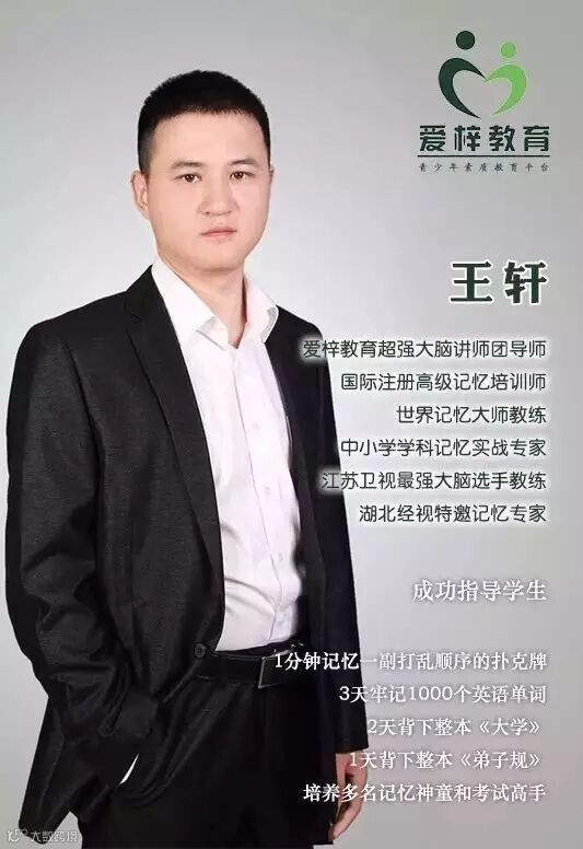 英国哲学家培根曾说:一切知识都不过是记忆。爱梓教育针对中小学生(8—15岁)“学科记忆挑战”全国巡回讲座荆门站公益讲座,江苏卫视最强大脑选手教练公开培训哦!