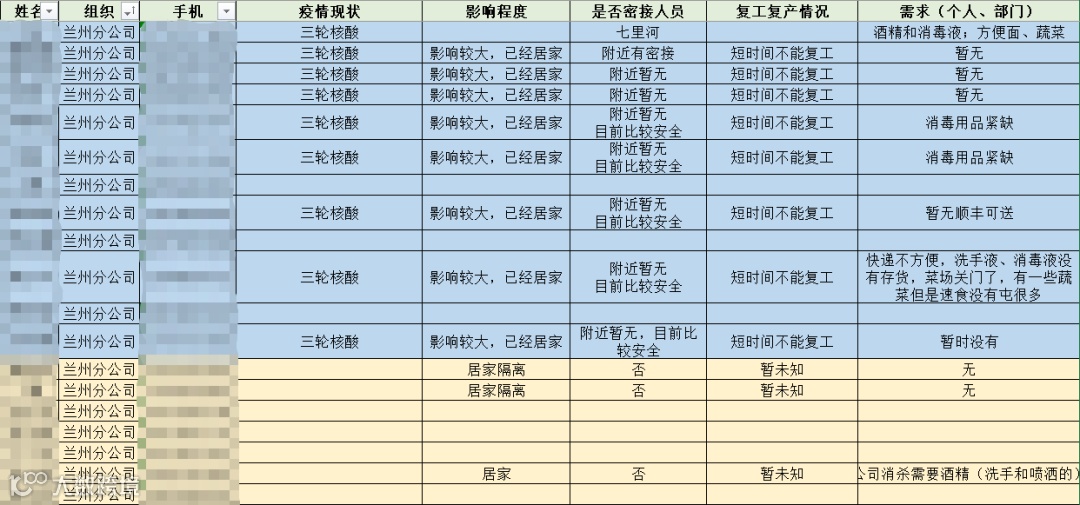 锦创南京总部拨打了疫情地区每位同事的电话了解情况,记录大家的需要。