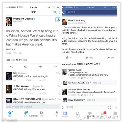 Facebook CEO扎克伯格则表示,拥有创造的技术和激情应该得到的是赞扬,而非逮捕,“未来属于Mohamed那样的人”,顺便和奥巴马一样,邀请他到Facebook去玩。
