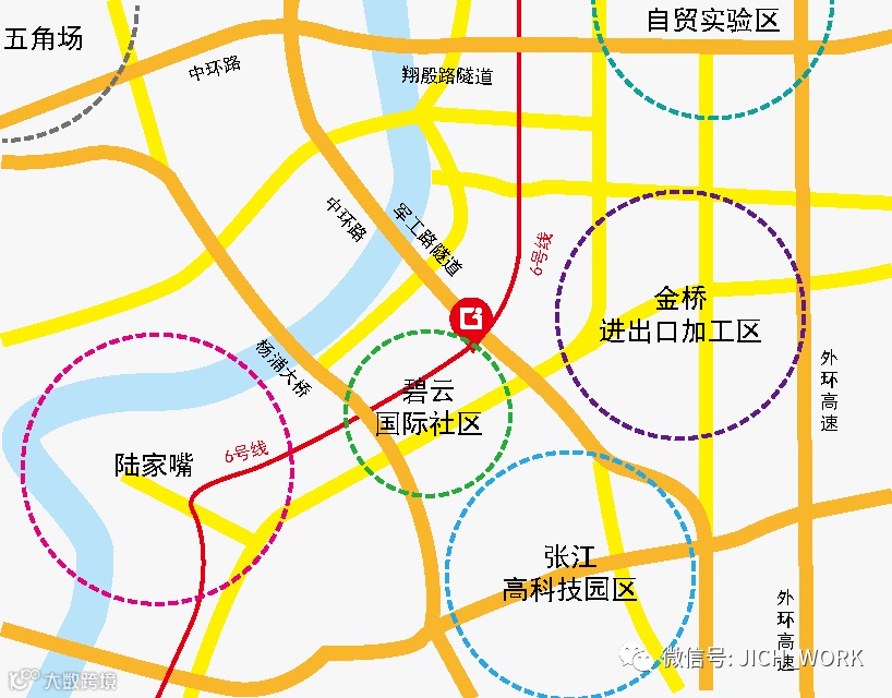 地铁6号线金桥路站2号口 出站100米直达,毗邻中环上下匝道和军工路隧道