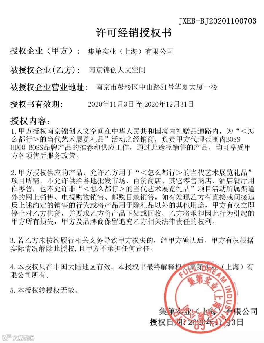 这次,我们做了大胆的尝试,邀请德国轻奢品牌hugo boss为本次“怎么都行”赵绪成老师的展览做了授权联名!并提供了联名款文创产品,并给予了低于市场非常大的优惠来支持本次活动!