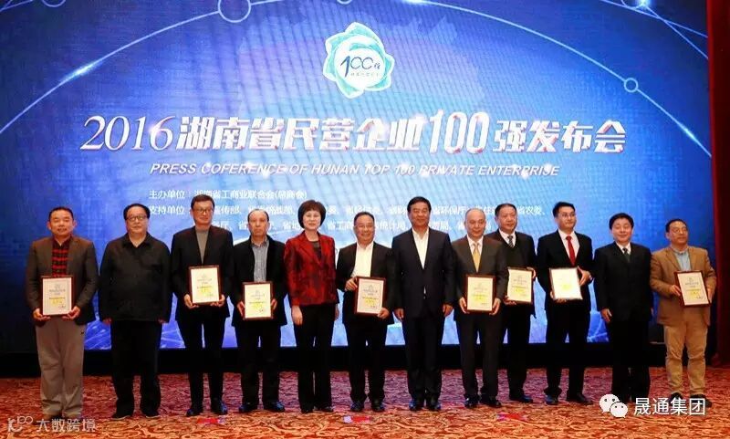 11月29日,湖南省工商联发布2016年湖南省民营企业100强名单,晟通科技集团有限公司以353.46亿元营业收入位列第四,并成功进入湖南省工业制造业10强榜单。