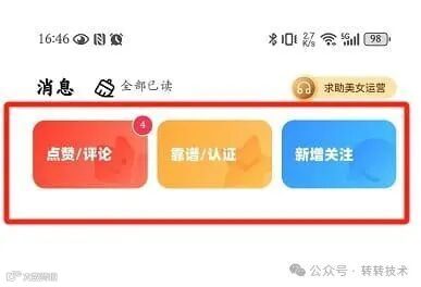 4.在消息通知页面,我们则着重统计这个用户需要关注的动态数据,点赞数,评论数,新增关注数量等等。