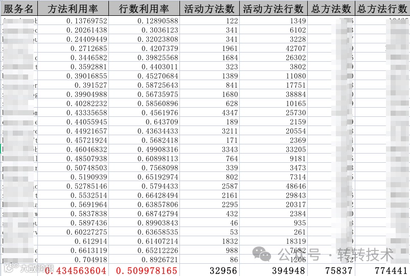 发现僵尸代码功能上线不久,仍处于试用期,暂未有丰硕成果。但是我们统计了已接入服务的代码利用率,当前综合方法利用率仅43%,行数利用率仅50%,未来可期。