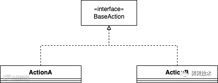 然后,以动作为基准,使用策略模式将不同的动作独立成不同的执行单元: