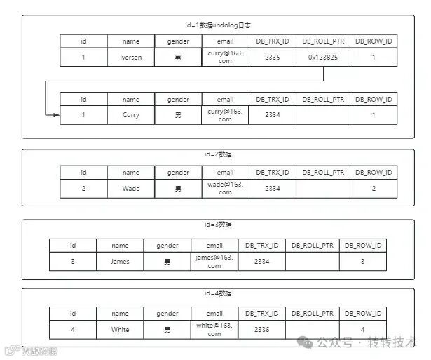 | id | name | gender | email | DB_TRX_ID |DB_ROLL_PTR|DB_ROW_ID|