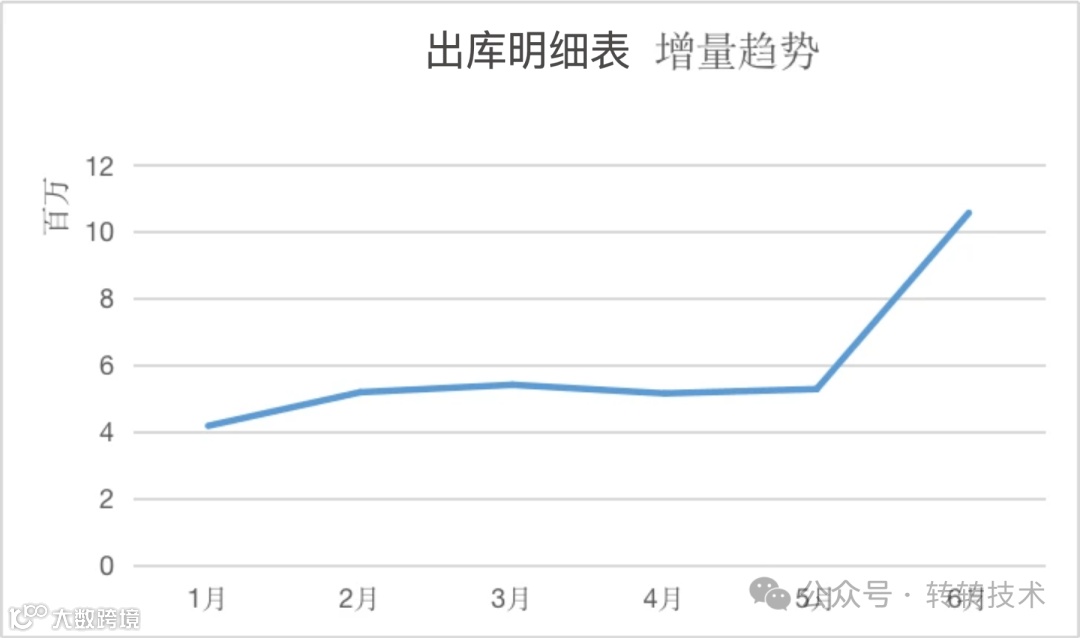 以下是数据量较大的表数据增量趋势图,可以观察到近几个月由于新业务的增加,每月的数据增量已经达到一千万。