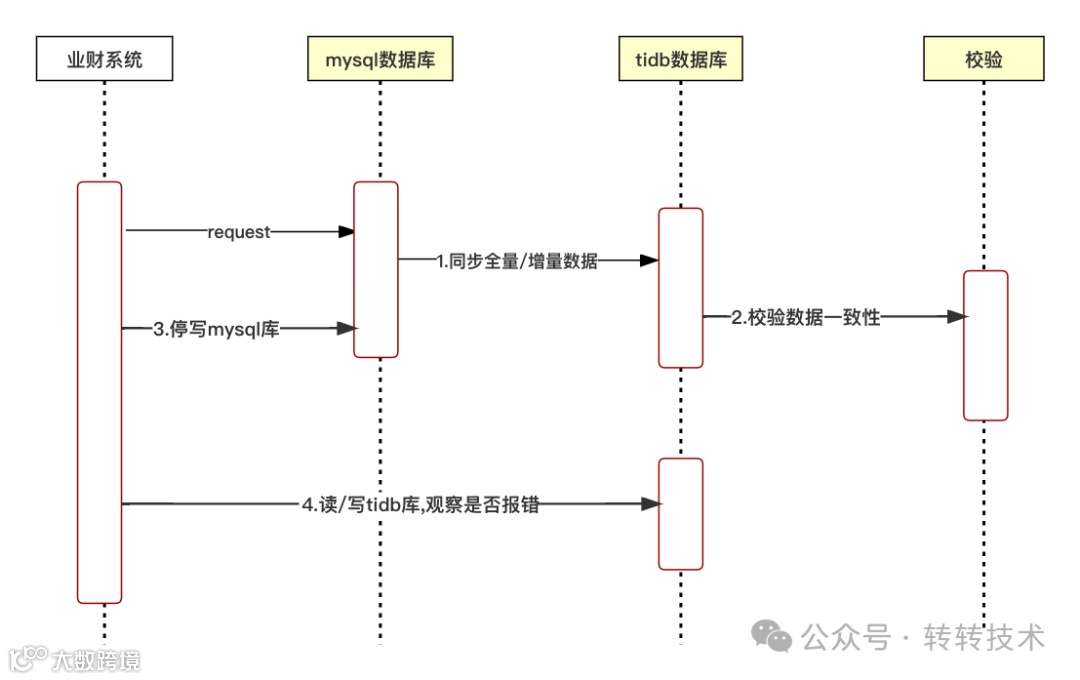 迁移过程中需要做到可以回滚,一旦迁移过程中出现问题,可以立即回滚到MySQL库,不会对系统可用性造成影响。