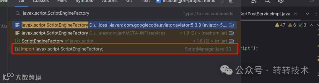 类看起来很陌生,不太像是我们常用的。不过javax.script.ScriptEngineFactory应该是一个线索。我们尝试搜一下。