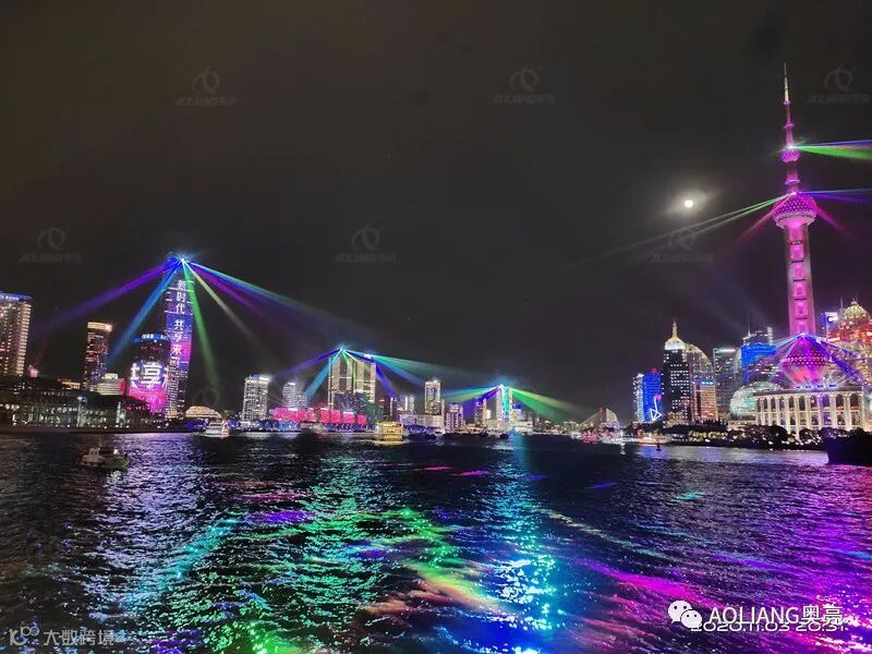 奥亮很荣幸能参与到此次项目中。今年的进博会主题光影秀是在2019年进博会主题光影秀的基础上改编、完善,并充分吸收了新版浦江光影秀的经验,通过增加表演灯光数量、调整位置、优化效果,实现两岸楼宇灯光、激光灯、光束灯与音乐的完美融合,展示上海开放、包容、创新的城市形象。