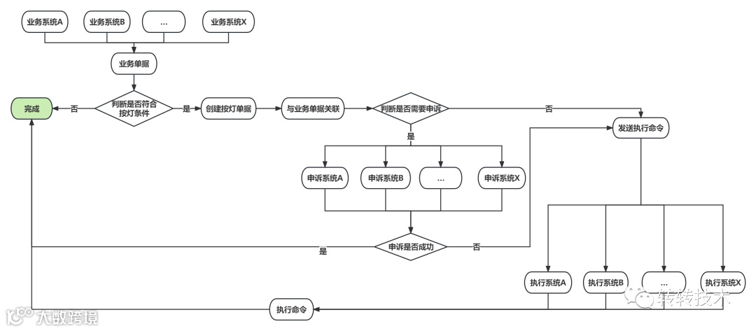 从流程上看,按灯相关流程放在业务系统中也可以实现。