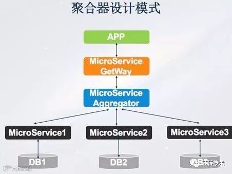 第二聚合器设计模式, 一个APP请求经过Gateway,到达聚合层,聚合层串行或并行调用三个微服务,将三个微服务的返回结果做聚合处理,比如对结果数据按照时间排序,聚合之后再反馈到Gateway以及APP端。