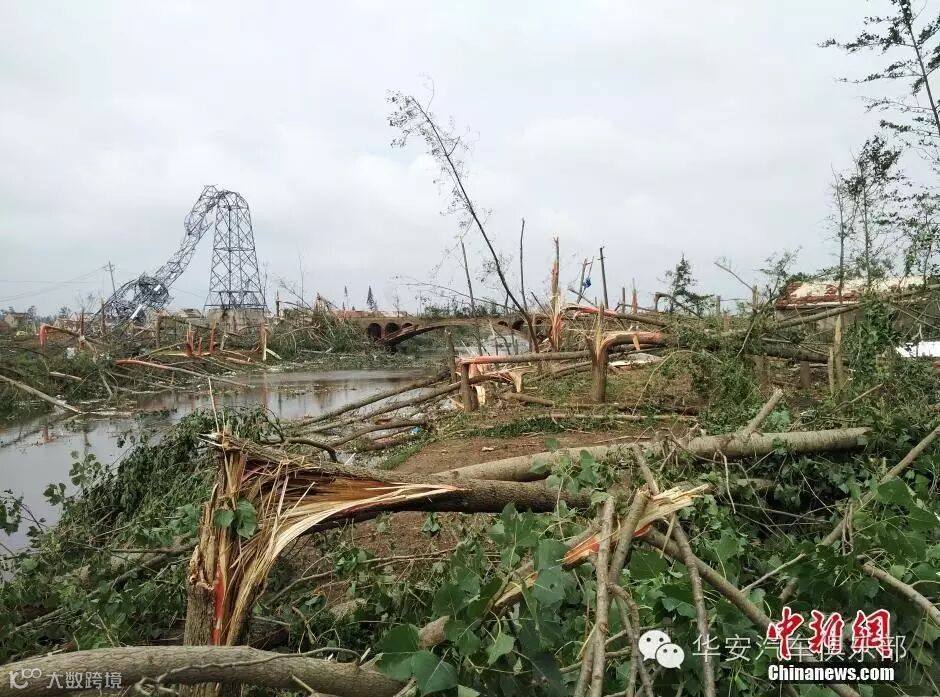 在应用中,往往采用对风毁的事后勘测来诊断级数,因此,根据网友上传的江苏阜宁的现场照片和视频中的风毁情况来估计,此次阜宁龙卷风应该是EF3上限的级别,对应风力达到17级及以上。