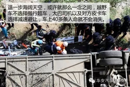 虽然大巴车没有义务一定要避让越野车,但退一步海阔天空,或许就那么一念之间,大巴车上40多条人命就不会消失。笔者知道现在说这些已经没有什么作用,也可能事实并非是大巴车与越野车斗气故意不让车,但笔者想跟大家分享的是这种在开车过程中需要时刻保持的危机意识。有时候没有必要因为一句“是对方的错,我没必要让步”而造成两败俱伤的后果,等事后想想才知道这种想法是有多么的不成熟。