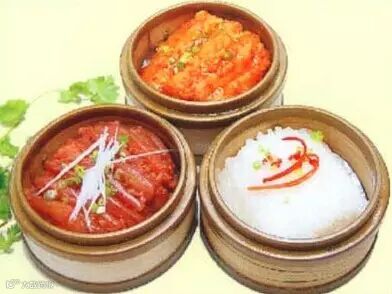 以主料带皮五花肉加米粉和其他调味料制作而成。粉蒸肉糯而清香,有肥有瘦,米粉油润,五香味浓郁。