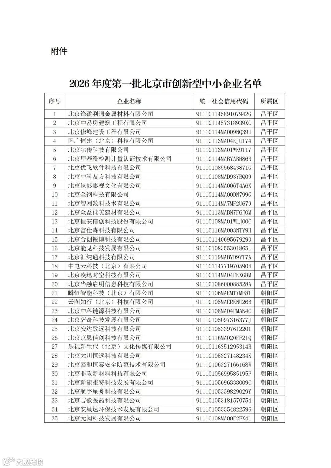 按照工业和信息化部《优质中小企业梯度培育管理暂行办法》(工信部企业〔2022〕63号)、《北京市优质中小企业梯度培育管理实施细则(2025年修订版)》(京经信发〔2025〕10号)要求,北京市经济和信息化局组织各区中小企业主管部门开展了北京市创新型中小企业的评价、认定工作。前期各区已将认定名单向社会公示、公告,经相关程序,2026年度第一批北京市创新型中小企业名单已经确定,共496家企业通过认定。