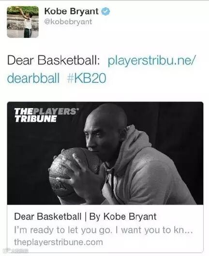 科比在《球员论坛网》上发表了自己的文章