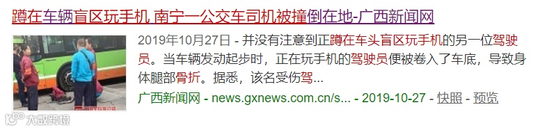 如果有人在车头盲区停留,驾驶人在车内可能无法看到,很容易引发事故。