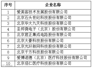 北京市专精特新企业累计发明专利前10 企业专利均超300项,名单如下:
