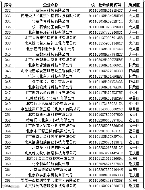 2024年度5月份北京市创新型中小企业名单