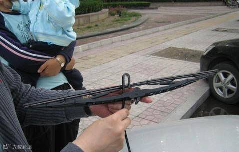 2.从一边取下原车的雨刷器,但要小心摇臂弹回来,容易把挡风玻璃砸坏。
