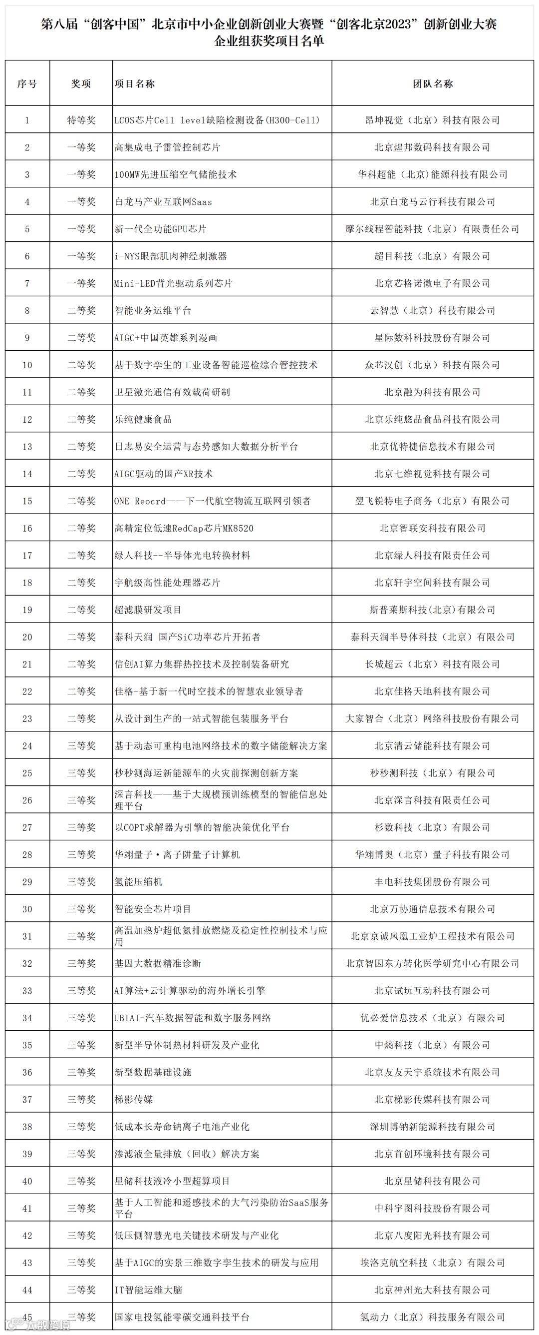 第八届“创客中国”北京市中小企业创新创业大赛暨“创客北京2023”创新创业大赛比赛环节已全部结束,现将企业组和创客组获奖项目名单公布如下:
