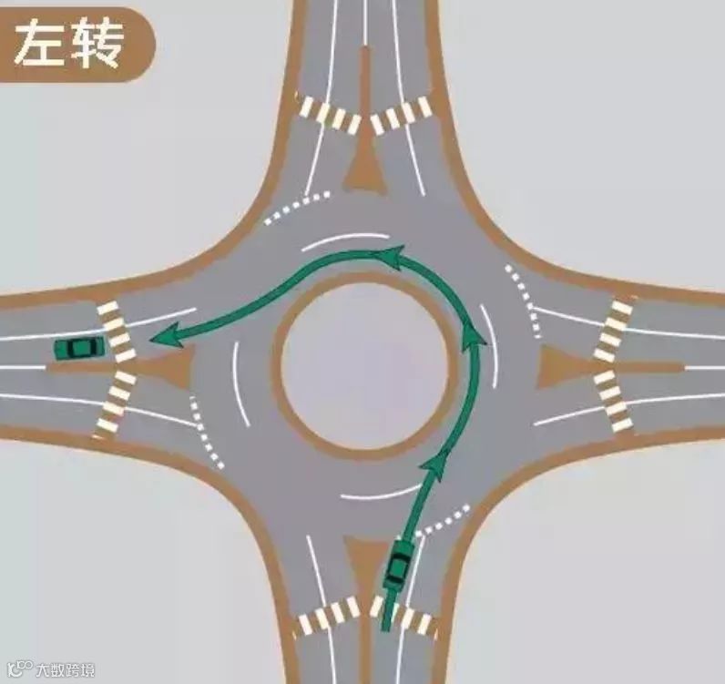 由于车辆需要从岛外切入内侧车道,因此车辆进入环岛时应打左转向灯。车辆驶出环岛前,应提前打右转向灯,确认安全后从内侧车道开始往环岛外变线,最后驶出环岛。