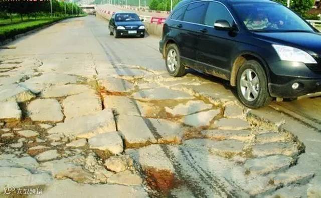 应对方法:开车时留意路面,发现深坑提前减速绕行。