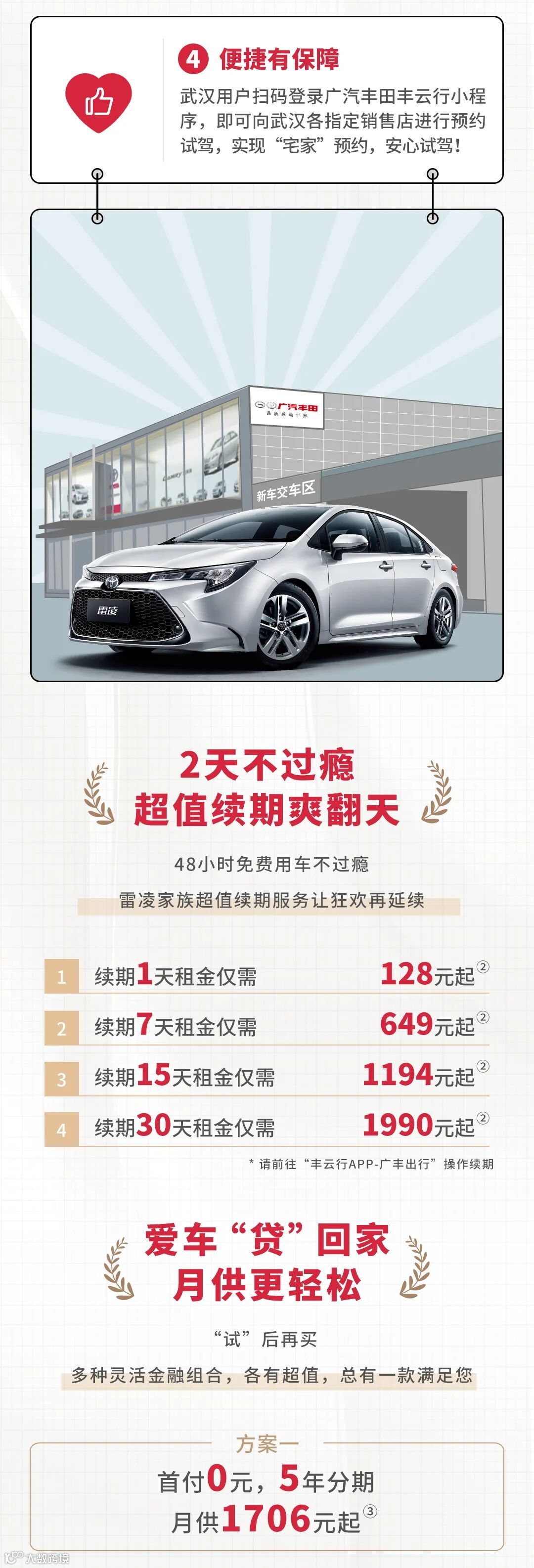 雷凌武汉48小时免费用车,畅快体验驾趣实力