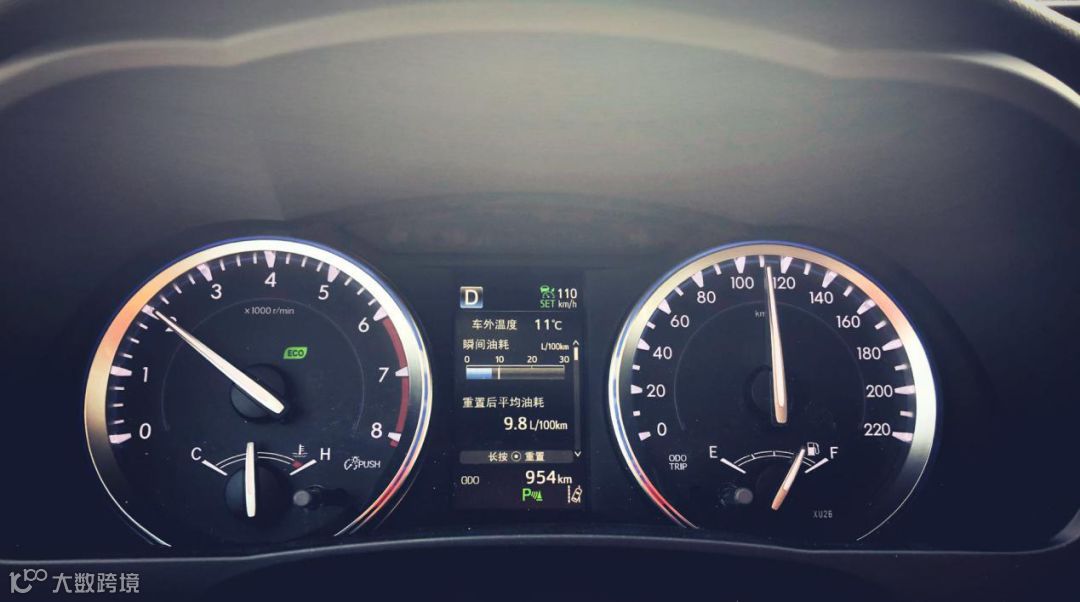 110公里/小时转速2000转整,此时瞬时油不足8升/百公里,2.0T+6AT无缝配合。