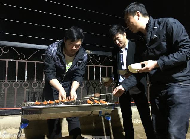 烧烤架上的点点火光足以让男生们烤熟里脊肉串
