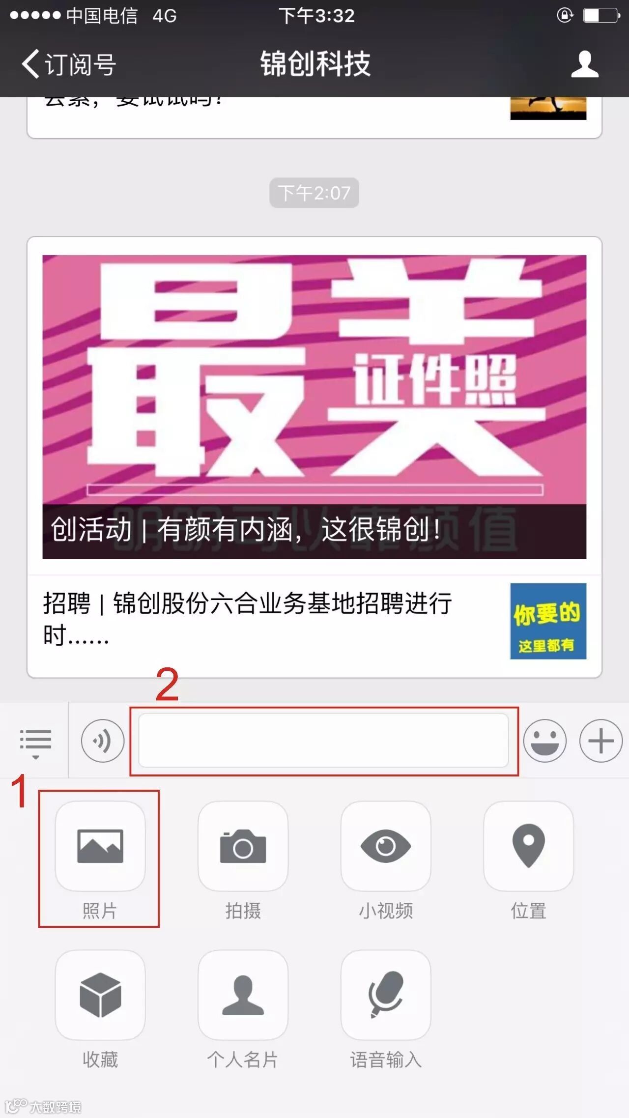 ②点击“照片”,在手机图片库选择你的证件照发送到后台即可报名成功(证件照只可选用工牌照或者身份证照哦~)
